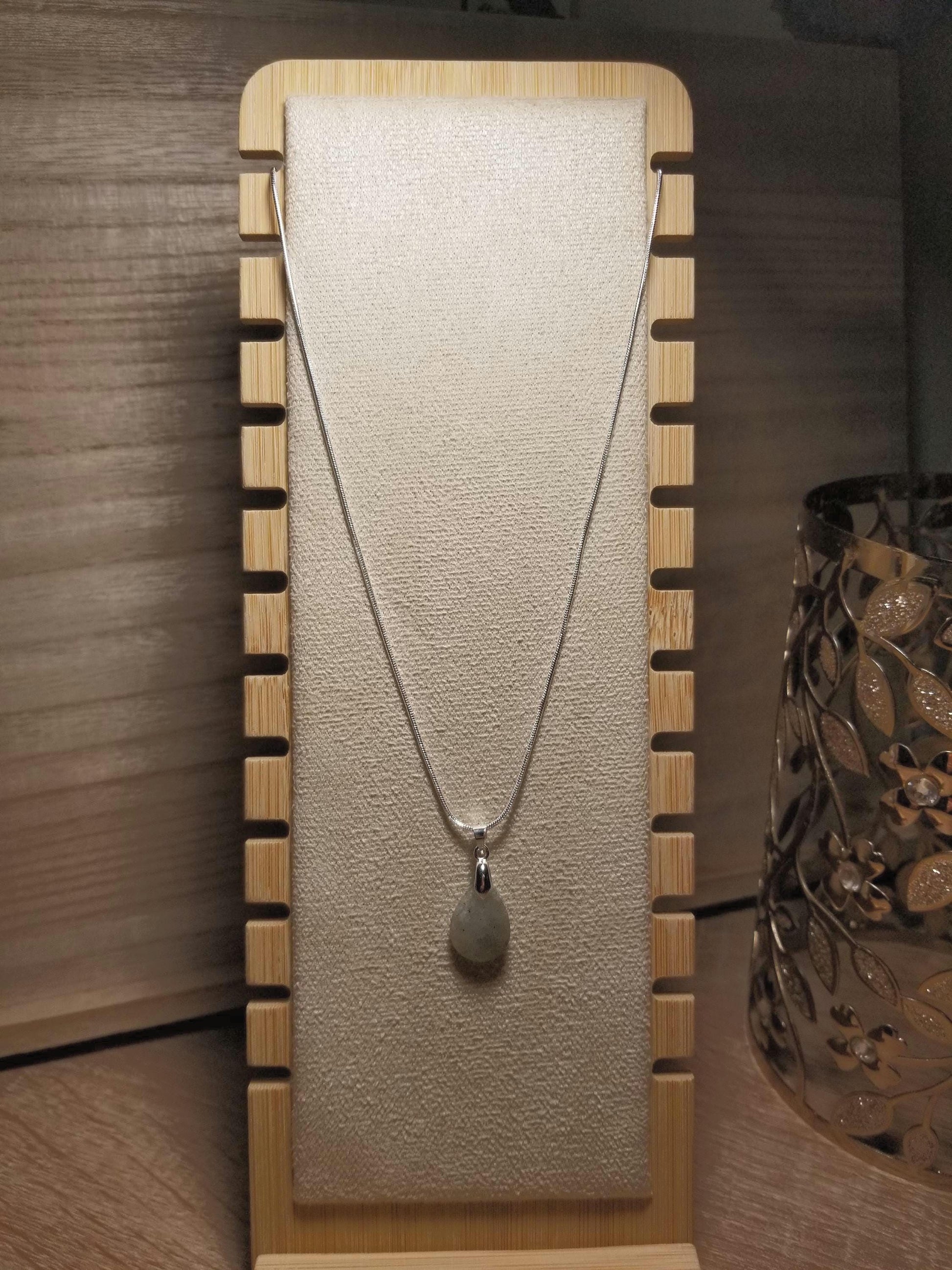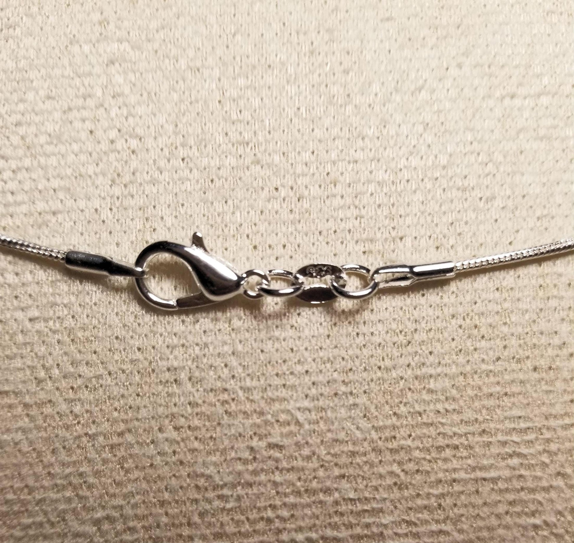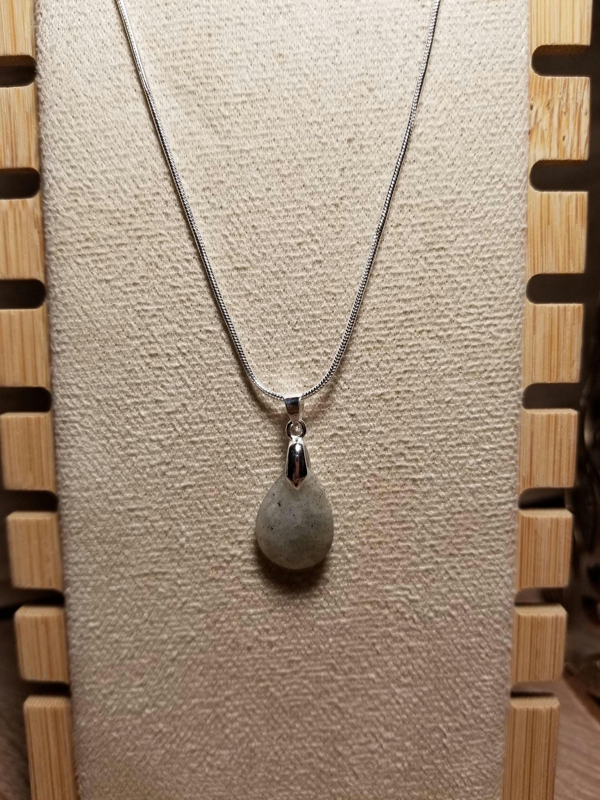 These necklaces are made with 925 silver 1 mm snake chains, 925 silver findings, and faceted Labradorite stone. Labradorite is a semi-precious stone that comes from Labrador which is located in Newfoundland and Labrador, Canada.