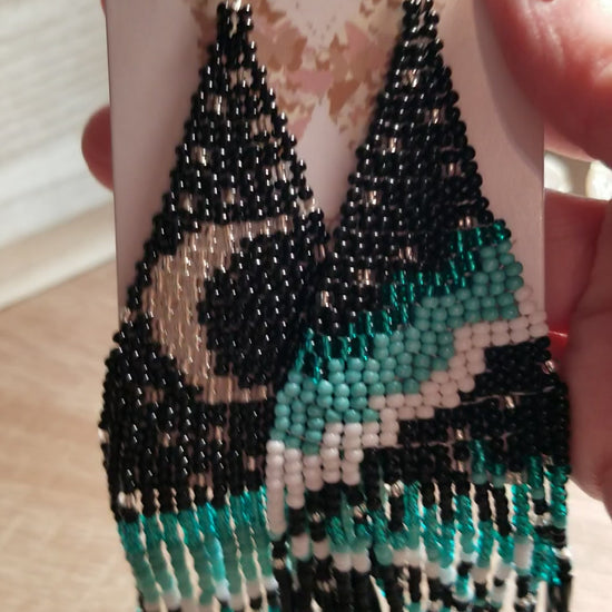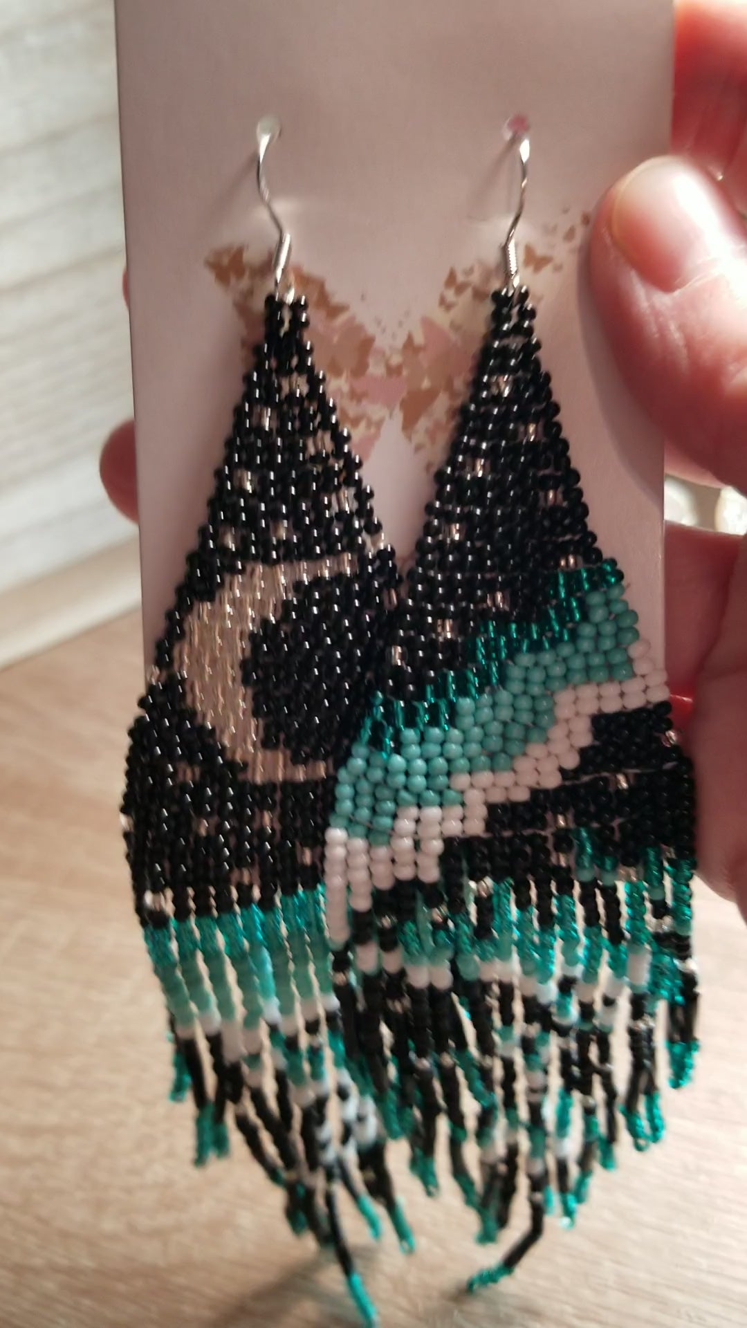 Indigenous-Native Style Beaded Fringe Earrings with Gold Filled Hooks, Boho Style Beaded Fringed Earrings with Gold Filled Hooks